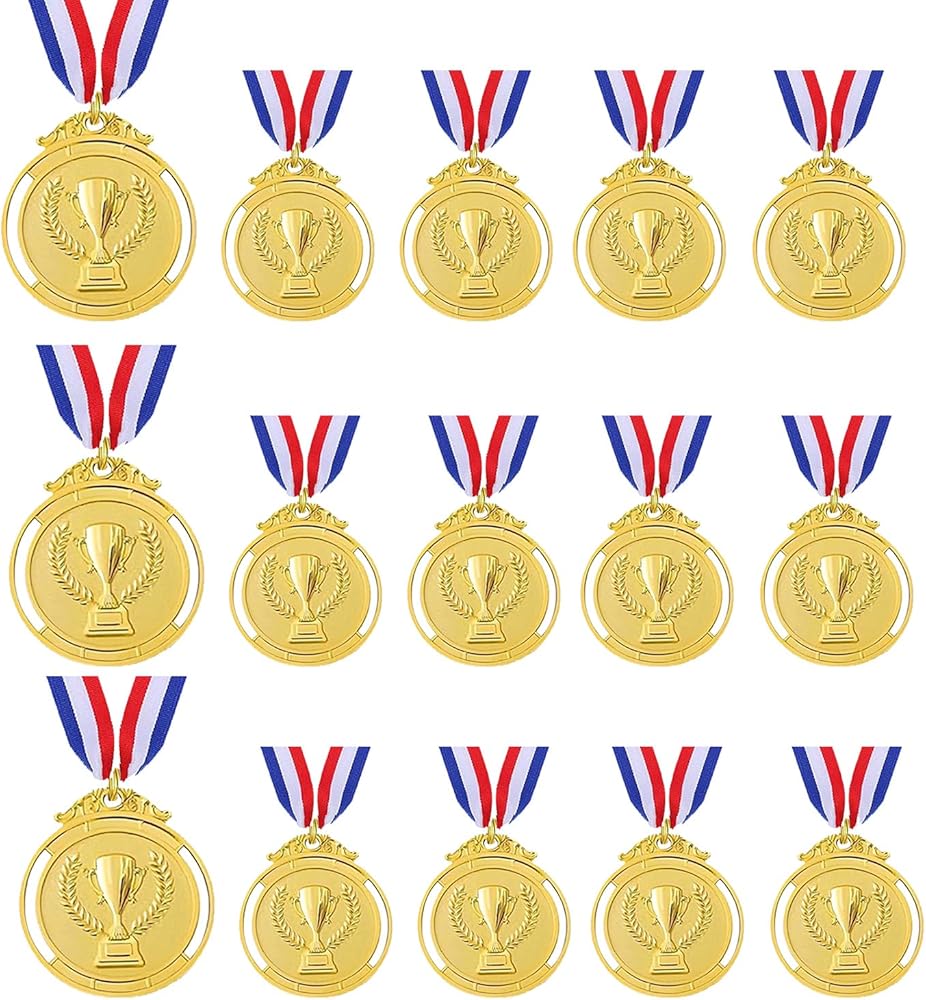 • Package Included: You will get 15 pieces Olympic-style gold medals, with beautiful nylon ribbon, perfect for celebrate children's success in the competition or sports.