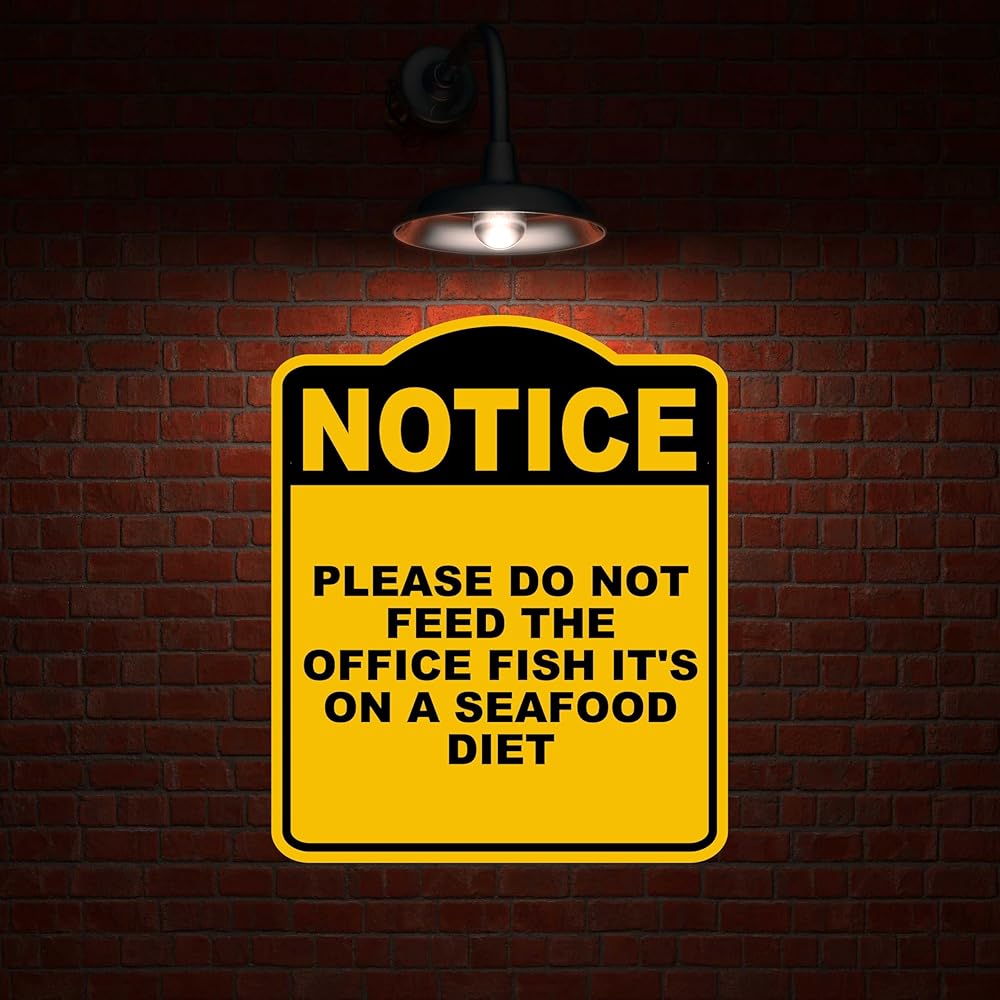 يرجى عدم إطعام أسماك المكتب على نظام غذائي للمأكولات البحرية إشعار بالألومنيوم الأسود الأصفر علامة 8.5 × 10 بوصات