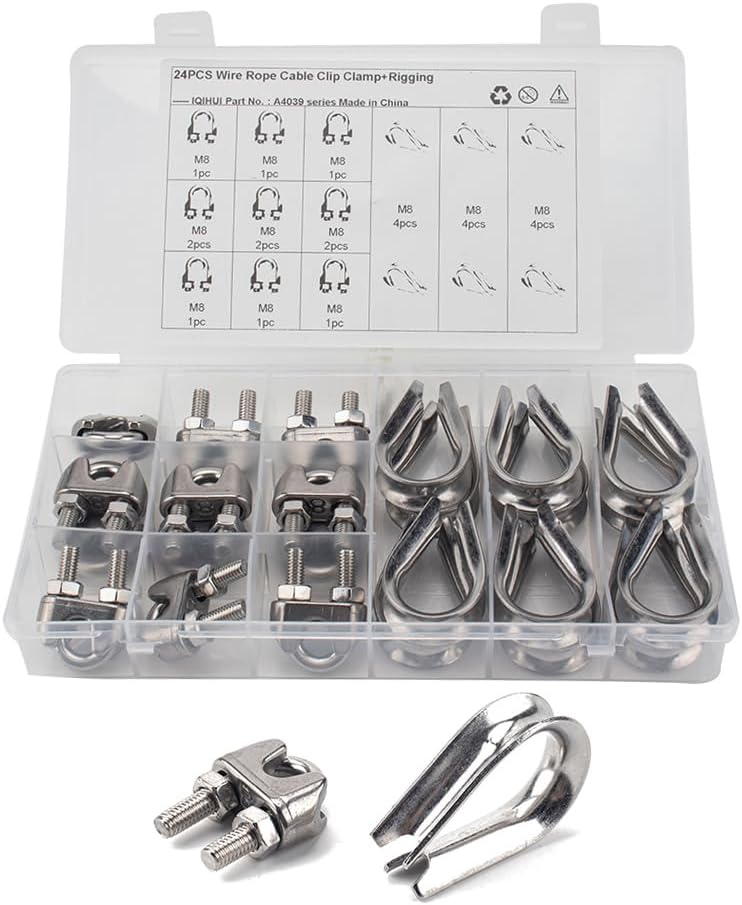 Cnonee1 12pcs M8 Wire Rope Fixed Clamps + 12 PCS Triangular Chicken Heart Ring