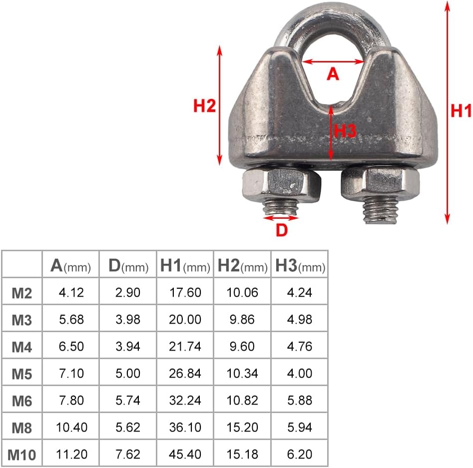 M8 wire rope clamp: rod inner diameter 10.4MM, thread diameter 5.62MM, suitable for wire rope 8mm;