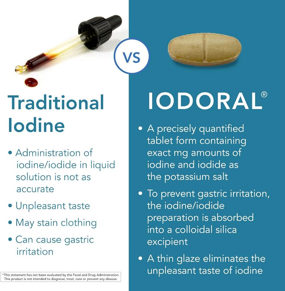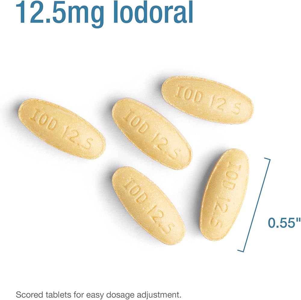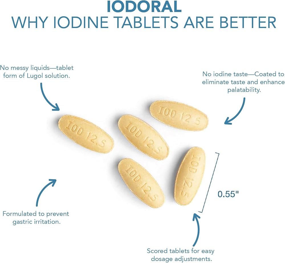 اليود، عنصر أساسي - قمنا بتعبئة 5 ملغ من اليود و7.5 ملغ من اليود (ملح البوتاسيوم) لصنع حبوب اليود خالية من القمح والغلوتين والذرة وفول الصويا والخميرة ومنتجات الألبان والبيض والأسماك والمحار والفول السوداني.