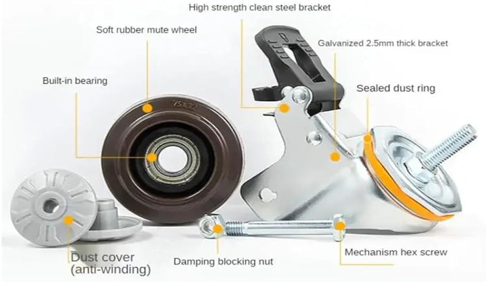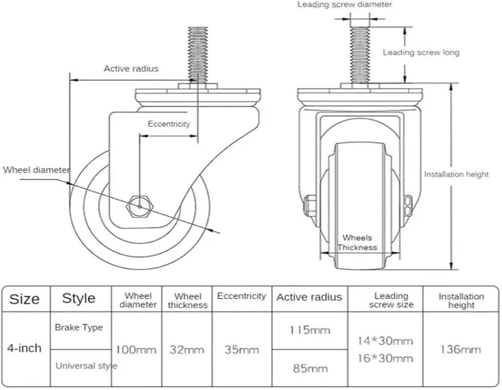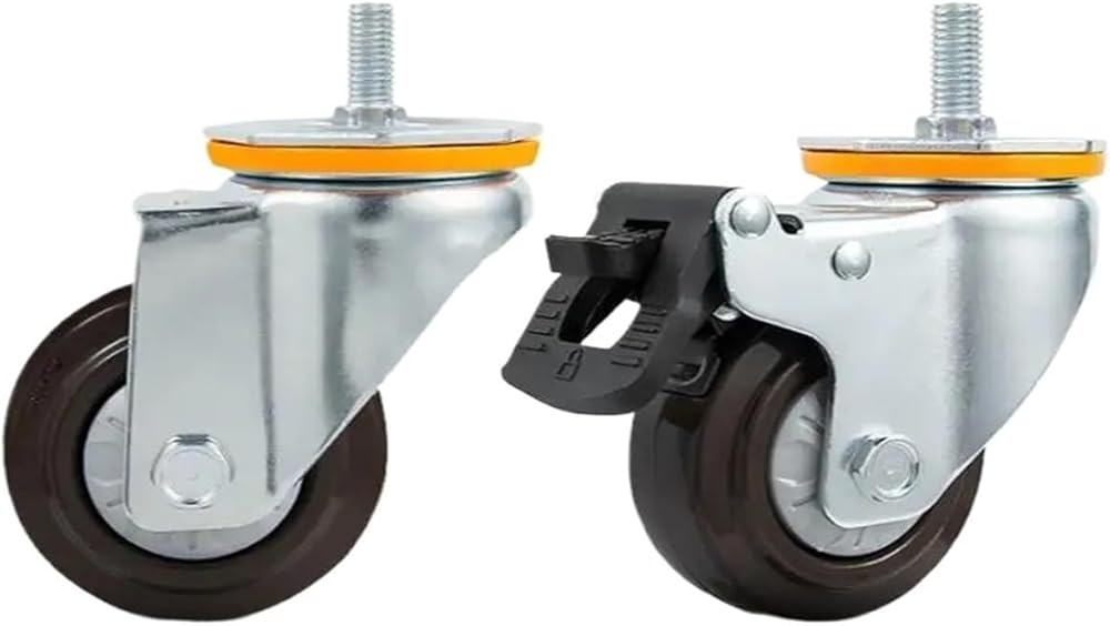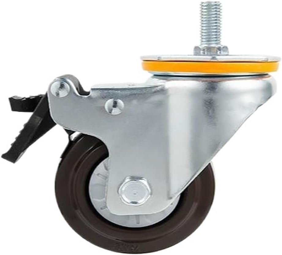 Ball Casters1 piece 4-inch M14/M16 screw universal wheel with brake rubber shaft caster pulley silent machine single load 112KG