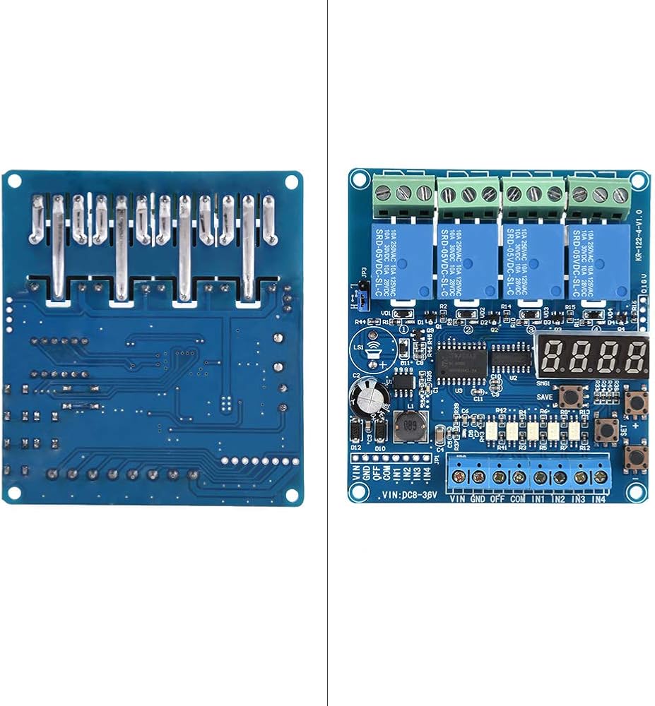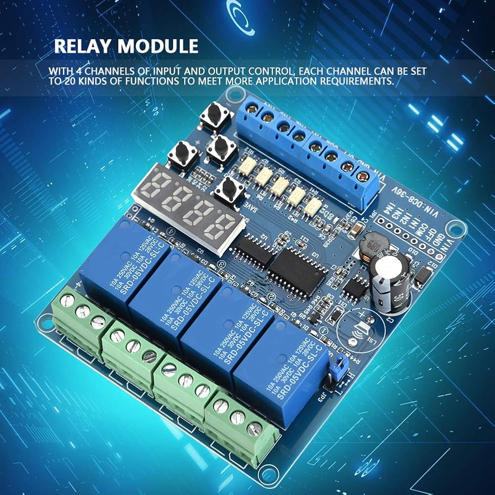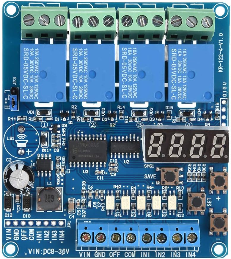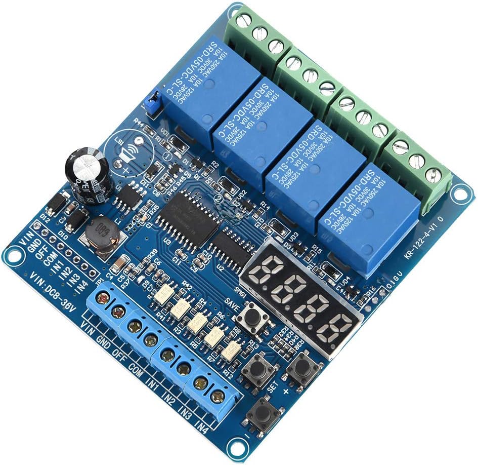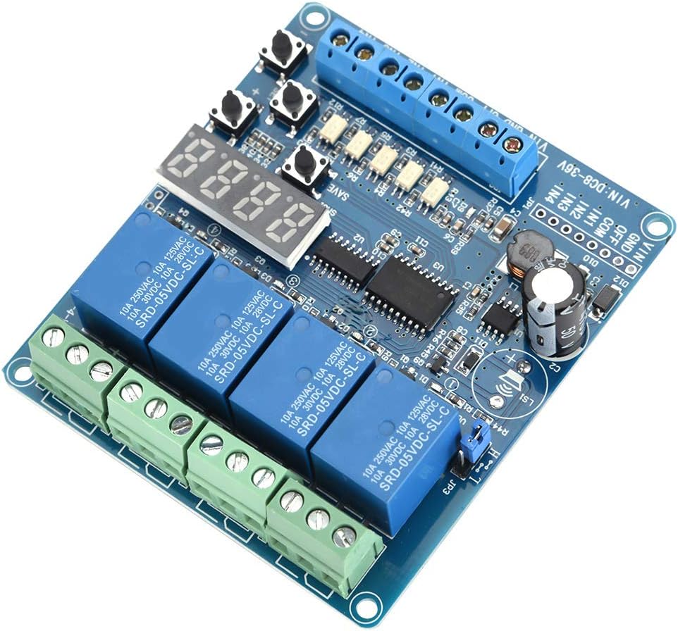 4 وحدة لوحة الترحيل متعددة الوظائف القناة مع مؤقت ، مفتاح DPDT 8-36V DC ، ترحيل تأخير الوقت القابل للتعديل لإلكترونيات السيارات الأتمتة الصناعية ، عزل Optocoupler مؤشرات حالة LED