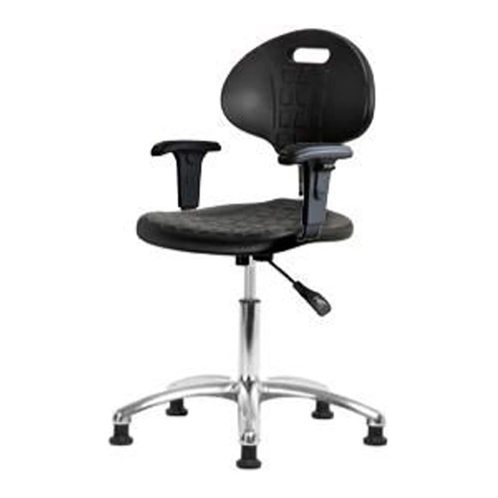 Our ergonomic basic industrial polyurethane chairs adjust to fit most body types and workstations. Optional 2-way adjustable arm rests support a variety of arm placements for proper ergonomics. Our polyurethane chairs are easily cleaned, making them ideal for almost any environment. Choose from chrome Hooded rolling, non-marring casters (suitable for both hard and carpeted floors) or black, non-marring Bell glides (suitable for both hard and carpeted floors) on a polished cast aluminum base. Each ergonomic polyurethane chair is backed by our 15-year warranty, lifetime on the Pneumatic lift.