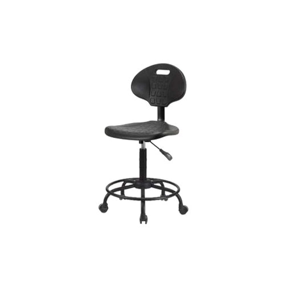 Our ergonomic basic industrial polyurethane chairs adjust to fit most body types and workstations. Optional 2-way adjustable arm rests support a variety of arm placements for proper ergonomics. Our polyurethane chairs are easily cleaned, making them ideal for almost any environment. These high Bench height chairs feature a black powder-coated steel base with fixed foot ring. Optional casters available and add 2-inches of height to the chair.