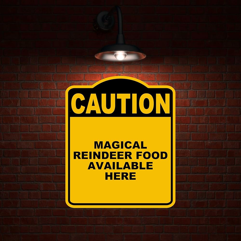 طعام الرنة السحرية المتاحة هنا تحذير أصفر أسود الألومنيوم المركب 8.5 × 10 بوصات