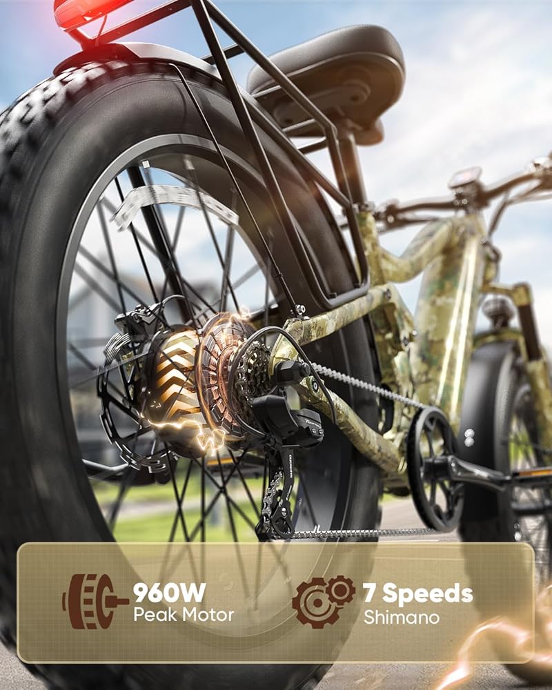 PUCKIPUPPY Boxer Electric Bike for Adults 960W, Full Suspension 48V 20AH Battery Ebike, 26" Fat Tire 28MPH 80Miles Range Mountain Electric Bicycle, 7 Speed Hydraulic Disc Brake