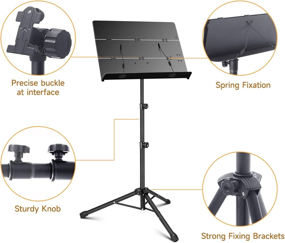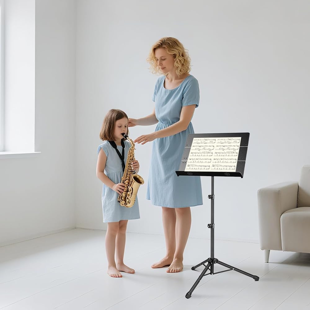 🎼【𝐒𝐓𝐔𝐑𝐃𝐘 & 𝐏𝐎𝐑𝐓𝐀𝐁𝐋𝐄】- The folding music stand boasts a durable metal frame with a wide, non-slip base for stability. Lightweight yet strong, this music stand foldable design fits easily in the included bag for on-the-go use.