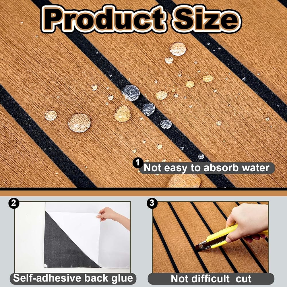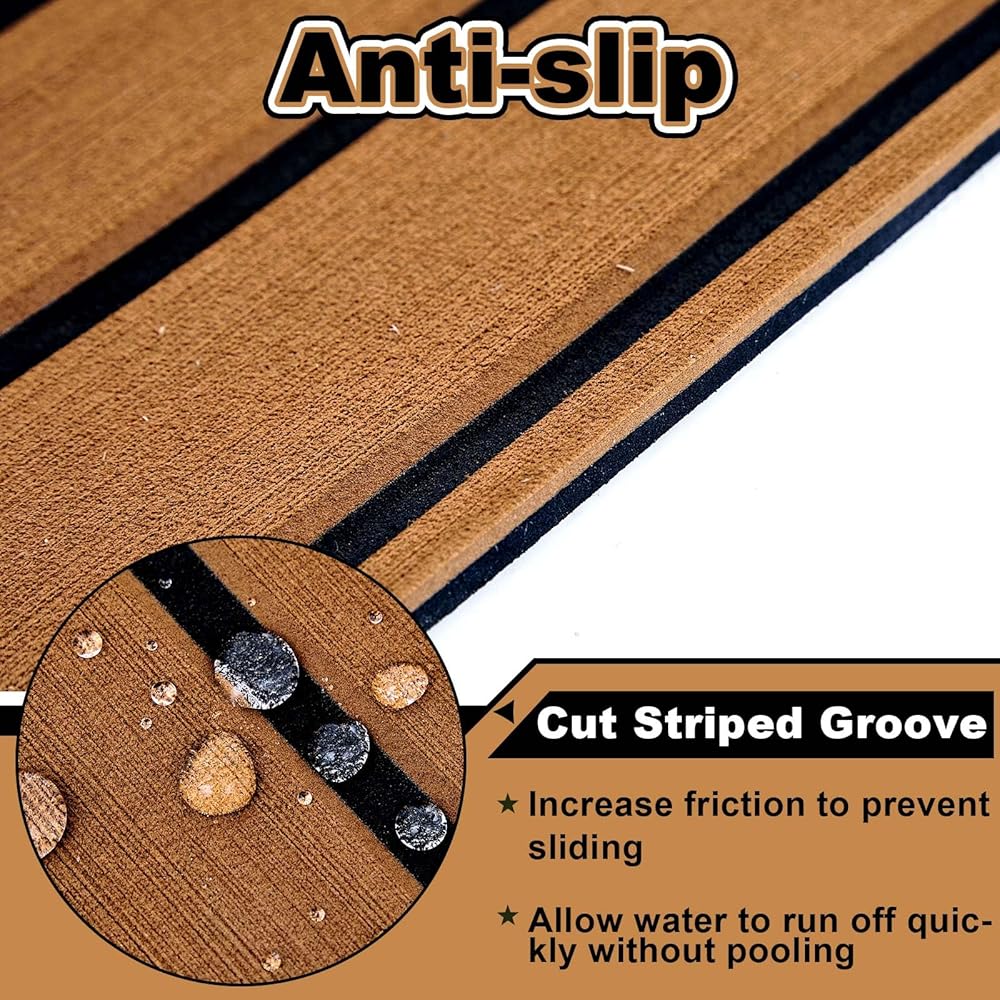 • مقاوم للماء وغير قسيمة: تم تصميم أسطح التزيين الرغوة الخاصة بنا للقوارب بأخاديد عميقة مخططة ، وتأثير الأرضية الخشبية المحاكاة التي تزيد من الاحتكاك ، والعملية والعملية ، وتمنع الانزلاق ، والسماح للمياه بالركض بسرعة