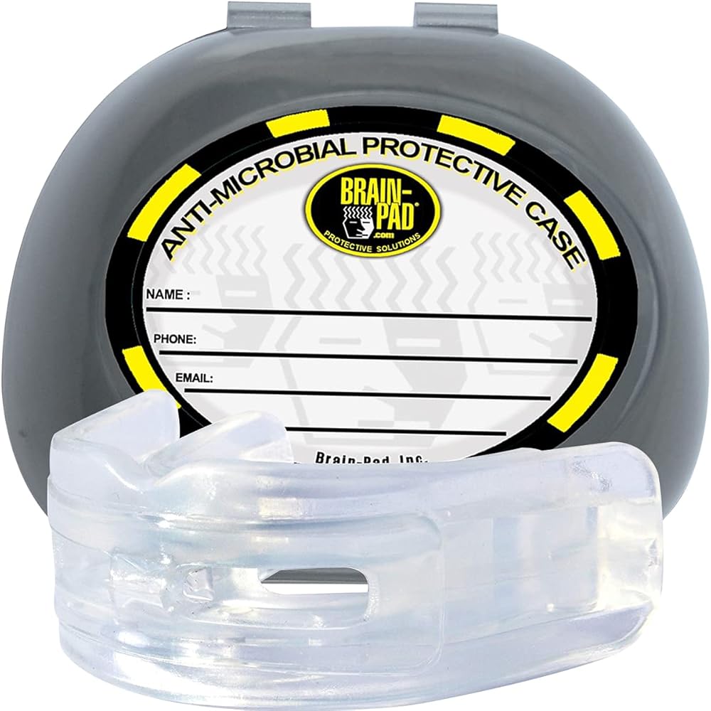 both Upper & Lower teeth -– Can be trimmed for comfort. , Stabilizes, Cushions the lower jaw with Dual Design. Creates and - maintains at Space. Tested and Proven to reduce energy to the base. A good model to Cover Upper & Lower Braces. Good for increased Free-Breathing! and Breath! Multi-sport model– Includes. Improves Performance and Strength - Promotes. Includes hard storage Case with name label. Please Note: Case may vary depending on availability.