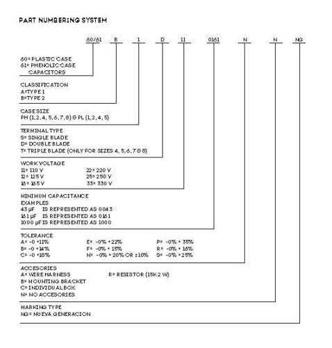 Manufactured by NGM (Nueva Generacion Manufacturas) and boxed by others, a world leader in the development and manufacturing of AC motor capacitors. NGM has been producing capacitors for over 50 years and has produced in excess of one billion capacitors during that timeframe. In the last years, NG acquired the assets of several companies including; Commonwealth Sprague, Mallory AC, Phillips and others. These start capacitors feature a black phenloic case which protects the capacitor from oil , dirt , grease or moisture. NG philosophy and strategy is to manufacture Start Capacitors that meet top quality standards of America (EIA 463) and Europe (BS EN 60252), which is considered as one of various differences against all our competitors located in China.