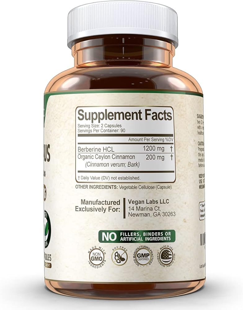 Vegan Labs Berberine HCL 1200MG مع قرفة سيلان عضوية - 180 كبسولة نباتية - تدعم استقلاب الجلوكوز والجهاز المناعي