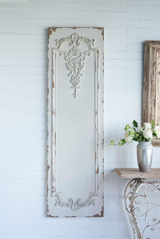 • Unique Design: Inspired by timeless boiserie designs, each panel features a weathered white finish that lends an individual charm, making your décor truly one-of-a-kind.