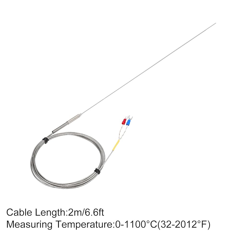 Temperature sensor, is in size of : 1mm x 300mm/0.04 inch x 12 inch(D*L) probe size, 2m/6.6ft cable length, 0-1100°C(32-2012°F) measuring temperature
