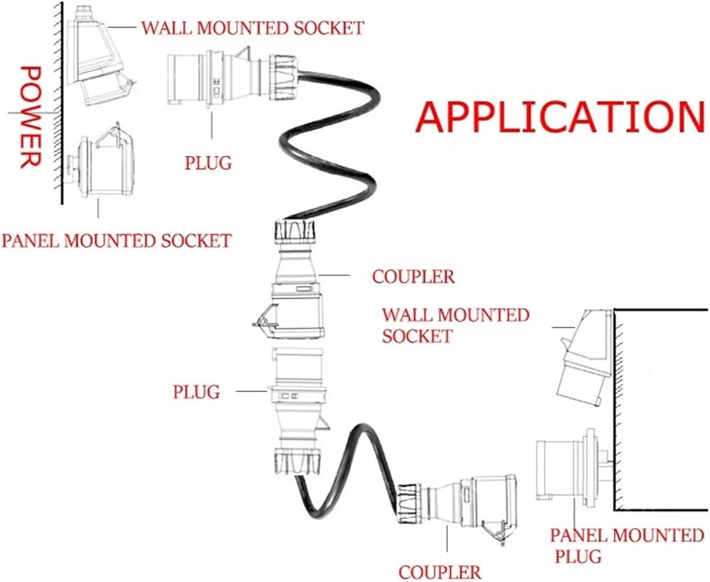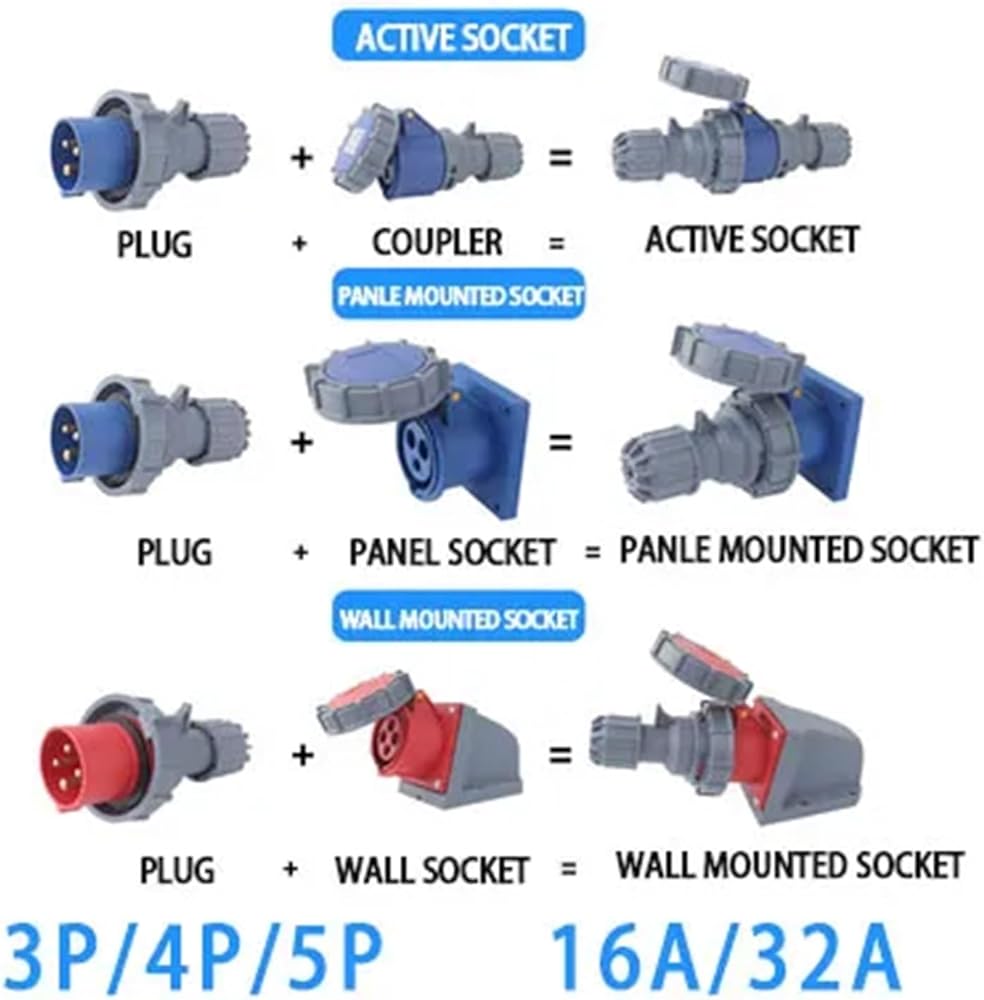 IP67 Industrial Plug and Socket 16A 32A 3 Pin 4 Pin 5 Pin Wall Mount Socket Panel Mount Coupler 220V 380V 415V(Coupler 3P 16A)