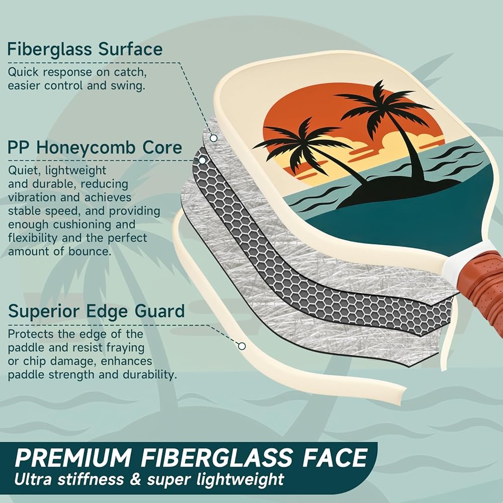 【مجاذيف المخلل الممتاز】 تم تصميم مجموعة Pickleball Paddles مع تكنولوجيا الألياف الزجاجية الفريدة وتكنولوجيا البولي بروبيلين العسل. يوفر قوة ومراقبة استثنائية. تقلل تقنية Polypropylene Honeycomb من الاهتزاز ويحقق سرعة مستقرة ، مما يؤدي إلى شعور الضرب الأمثل. يوفر سطح الألياف الزجاجية أداءًا متناثرًا ممتازًا. مضرب المخلل خفيف الوزن ، قوي ودائم.