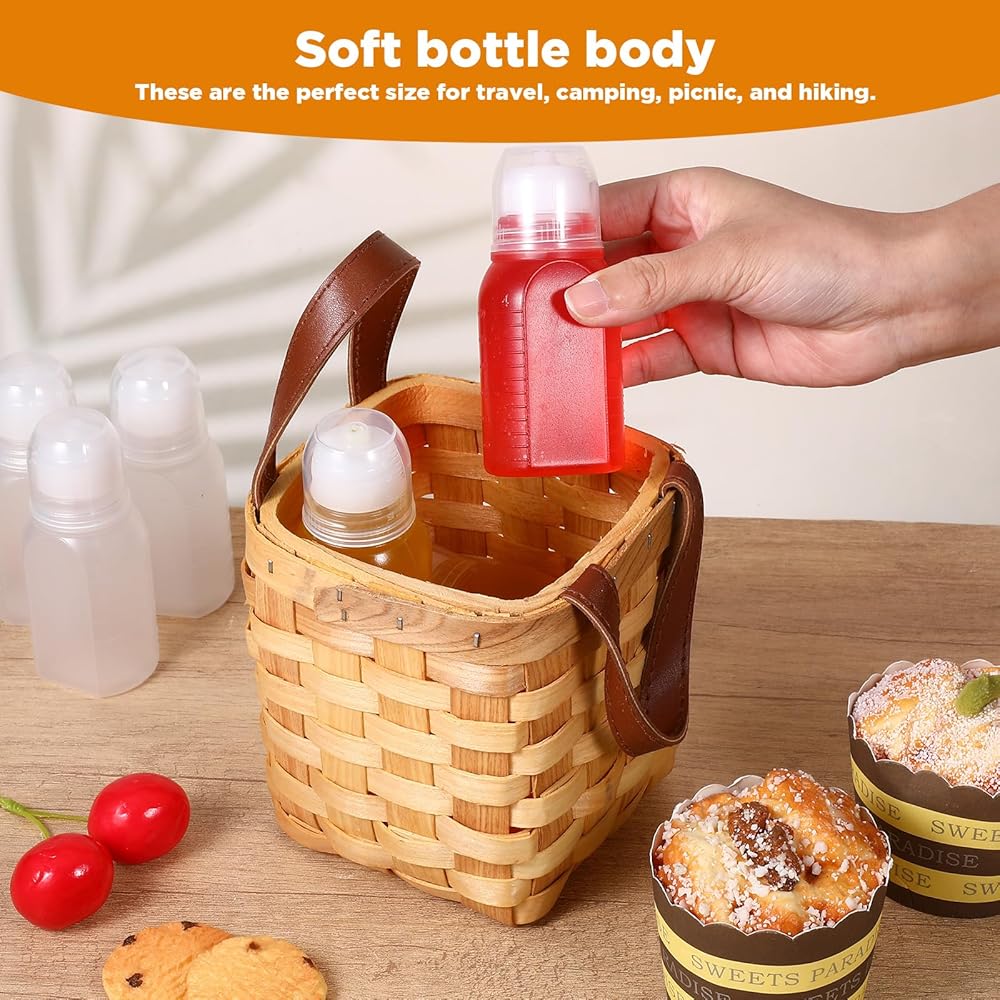 【Versatile】: Small squeeze bottles for sauces are not only perfect for sauces but also versatile enough to hold toiletries like shampoo and conditioner, making them a must-have for travelers. The wide-mouth design of mini sauce bottles facilitates easy filling and cleaning.