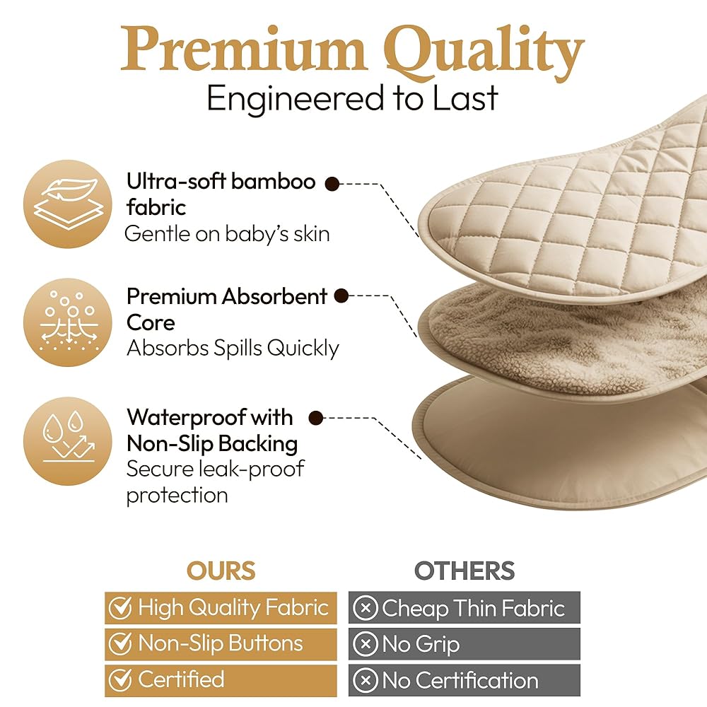 • الراحة الفائقة للطفل-مصنوع من تصميم ثلاثي الطبقات فريد من نوعه لتحقيق أقصى قدر من الراحة والمتانة: الطبقة العليا من بطانة لوحة تغيير الأطفال هذه هي لزوجة الخيزران بنسبة 95 ٪ مع دنة بنسبة 5 ٪ لسطح حريري وممتد ؛ الطبقة الوسطى هي صوف القنب الماص لمكافحة الرطوبة الطبيعية. وتتميز الطبقة السفلية بوس مقاوم للماء مع دعم غير انزلاق للحفاظ على غطاء وسادة التغيير في مكانه بشكل آمن وحماية وسادة التغيير الخاصة بك من التسريبات.