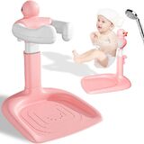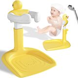 Ergonomic & Adjustable Design--Our baby shower stand is made of premium food-grade ABS material and features an ergonomic backrest. The height-adjustable design supports your baby's natural back curve from 6 to 36 months, promoting proper posture while standing. The width-adjustable handrail, made of soft, skin-friendly material, simulates mom's embrace, keeping your little one secure and comfortable.