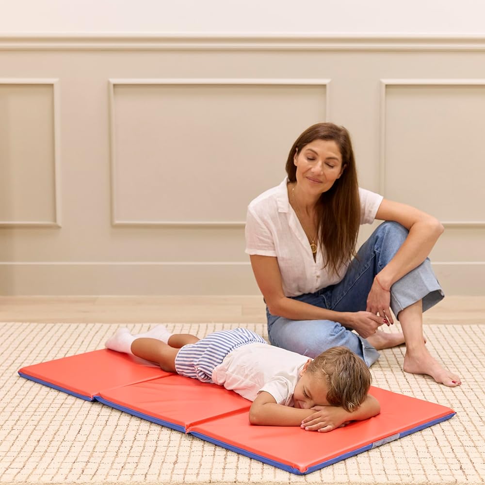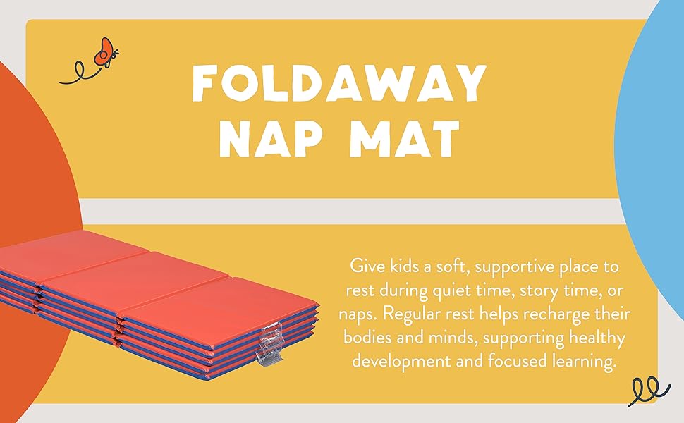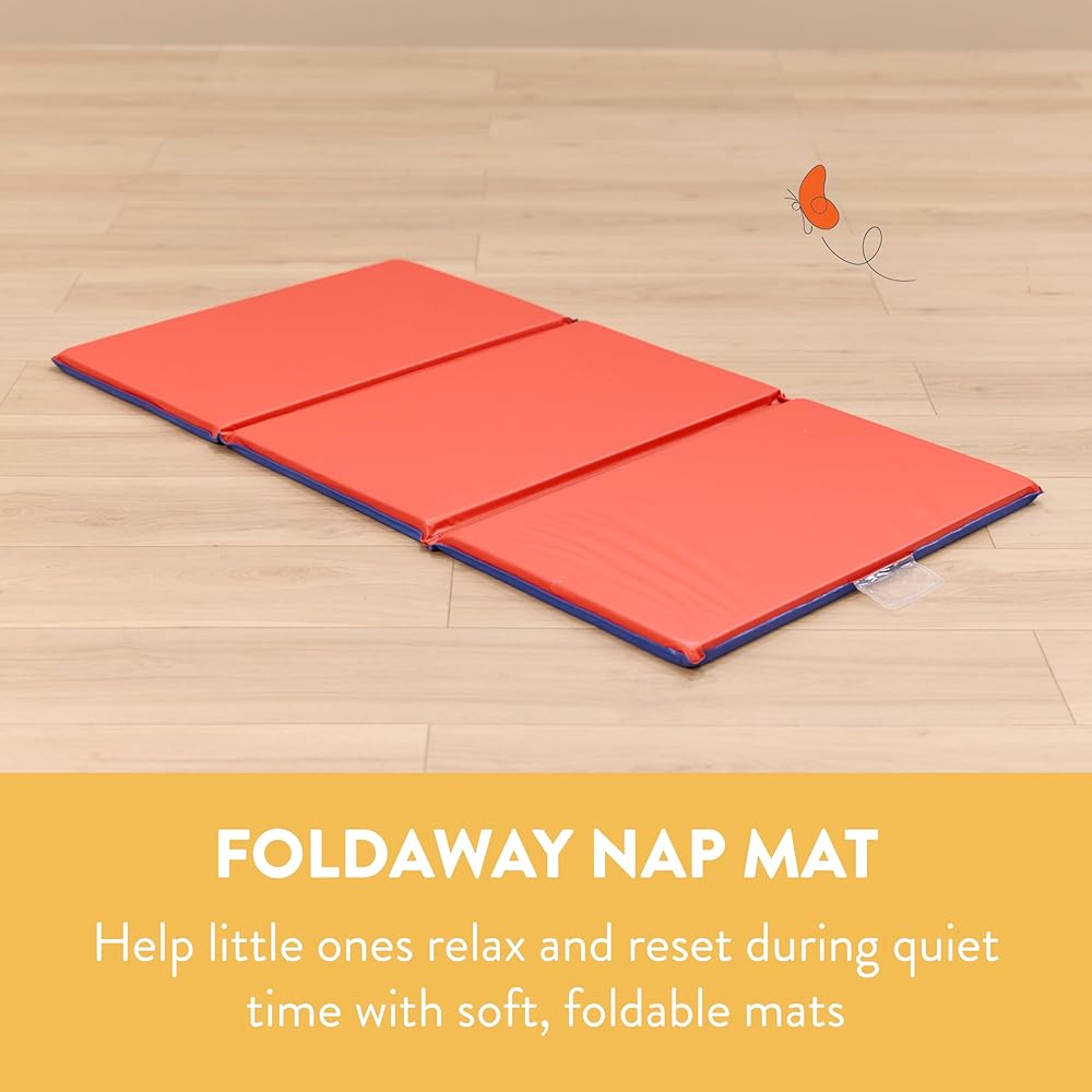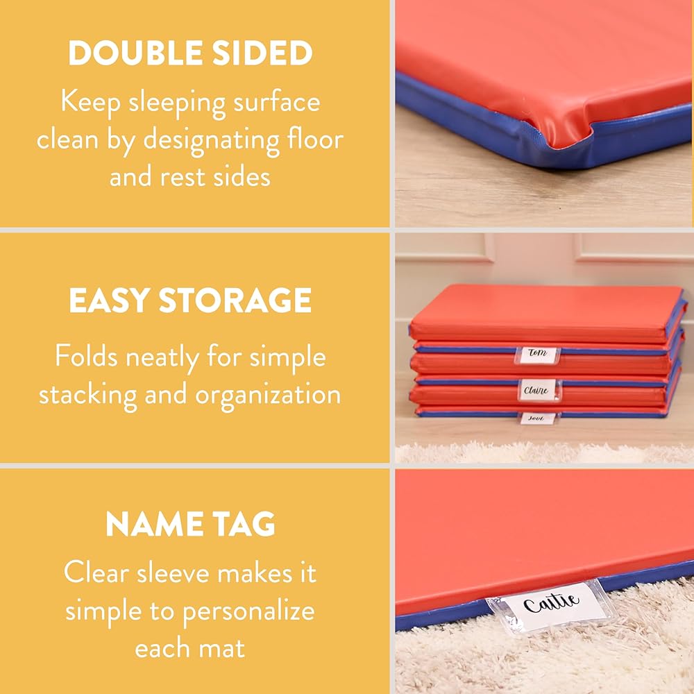 Sleeping Pad: Soft, folding two-tone foam sleep pad provides toddlers and preschoolers with a cozy space for naptime, storytime, or rest, lightweight stackable design saves space when not in use
