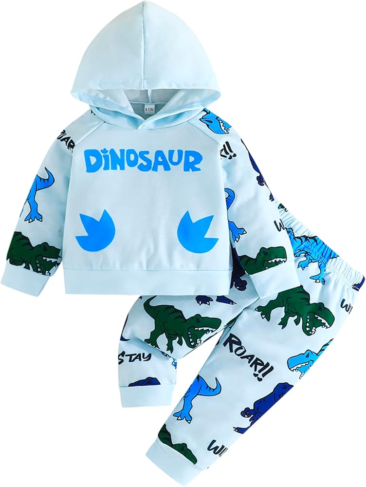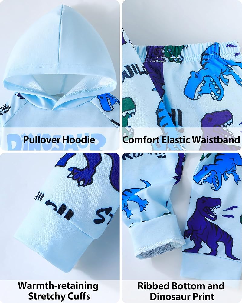 ملابس الأطفال الأنيقة والمرحة: تبرز ملابس Baby Boy Dinosaur Hoodie & Sweatpants مع طفرات ثلاثية الأبعاد مرحة على غطاء محرك السيارة وخط العنق الواسع المصمم لارتداء الملابس السريعة - مناسبة لأيام سقوط منسم.