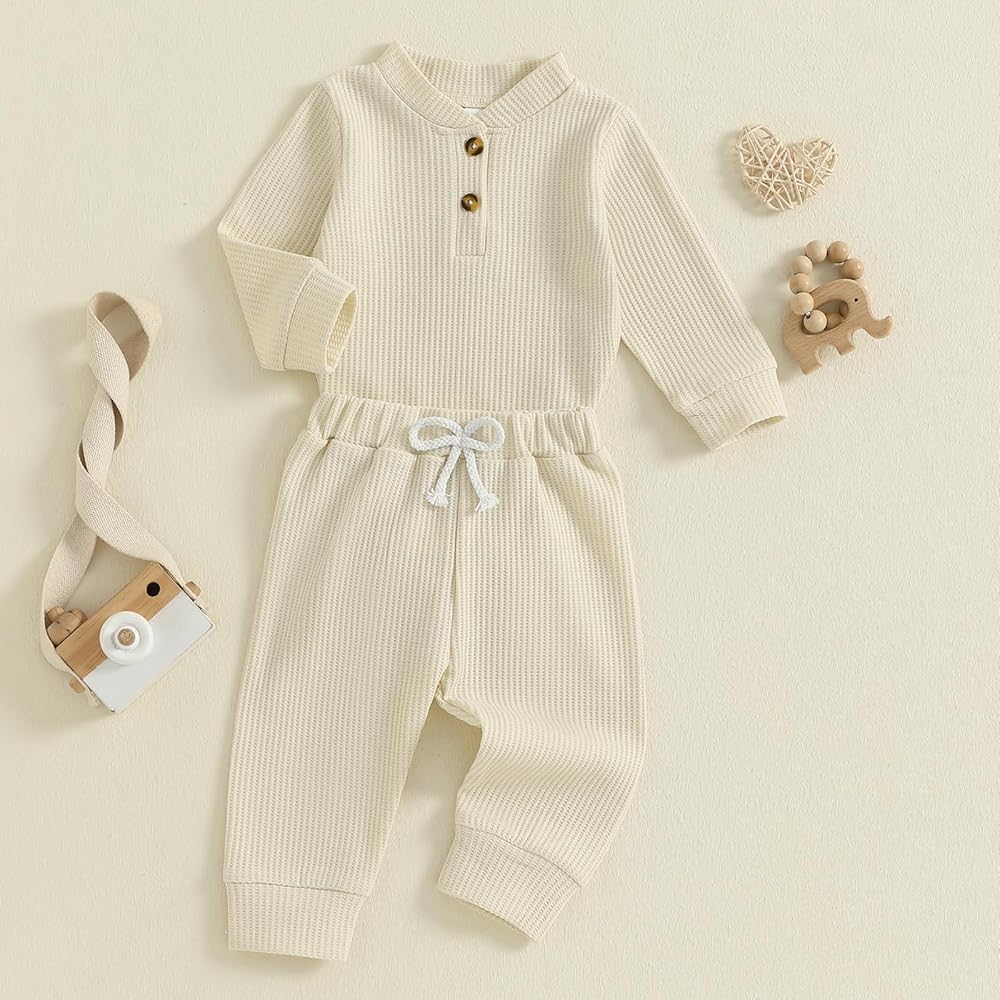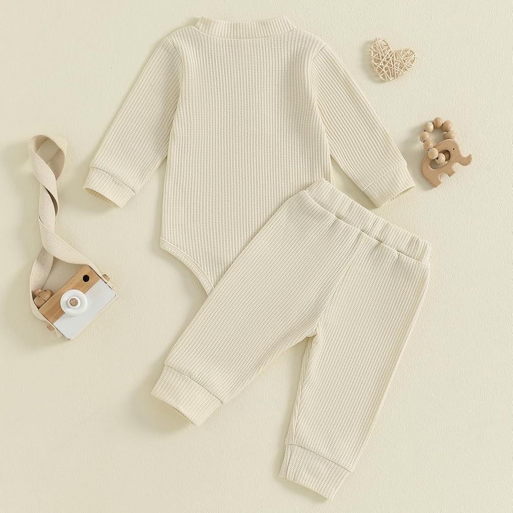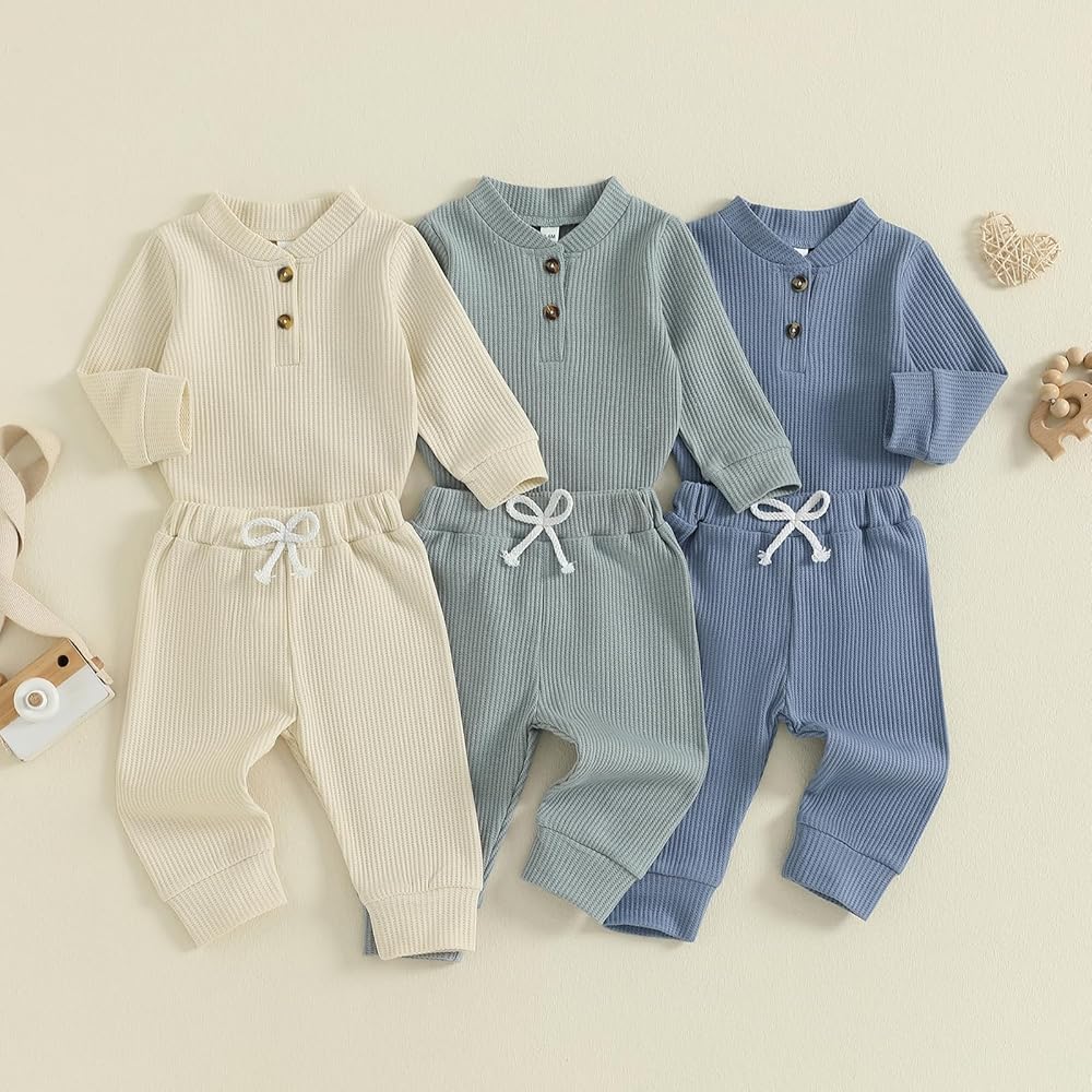 • High Quality Material: Baby boy two piece outfits, baby boy outfits, baby clothes boy, infant boy clothes, newborn clothes for boys, baby boy fall outfit, baby boy fall clothes, newborn boy outfits, baby boy waffle knit outfit; Made of 95%cotton and 5%elastane; Skin-friendly fabric, soft in texture, comfortable to wear
