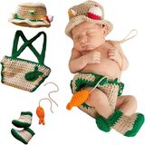 - مجموعة الدعائم الفوتوغرافية للأطفال حديثي الولادة مصنوعة يدويًا مع الكروشيه الحساس ، بما في ذلك قبعة الغزلان والبانتي.