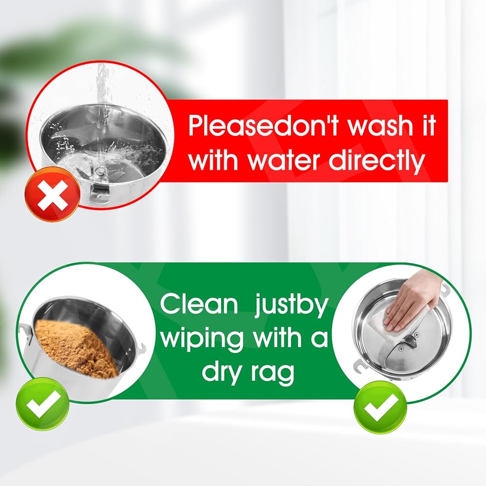 【الفولاذ المقاوم للصدأ سهلة التنظيف】 مناديل غرفة الفولاذ المقاوم للصدأ من فئة الطعام تنظيفها بسرعة. تذكر: لا تستخدم الماء أبدًا - فقط قم بتنظيف المخلفات بعد كل استخدام للأداء طويل الأمد.
