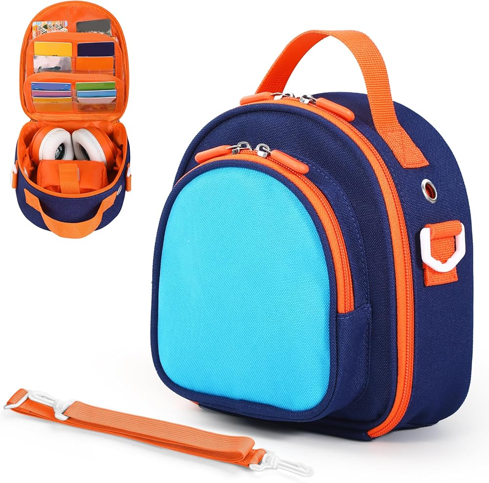Carrying Case Compatible with Yoto Mini (2024 Edition), 30 Cards Storage Bag with Handle & Shoulder Strap, Travel Protective Case for Player & Headphone Accessories (Blue)