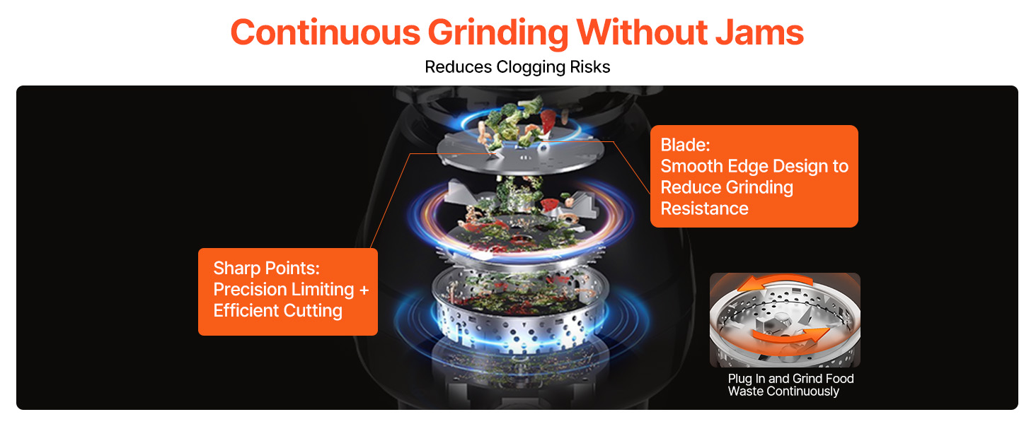 راحة العلف المستمر: يدعم التخلص من الطعام لدينا تغذية نفايات الطعام - لا تنتظر بين الأحمال. ارم في بقايا الطعام والخردة اليومية في أي وقت لتنظيف المطبخ السريع والكفاءة