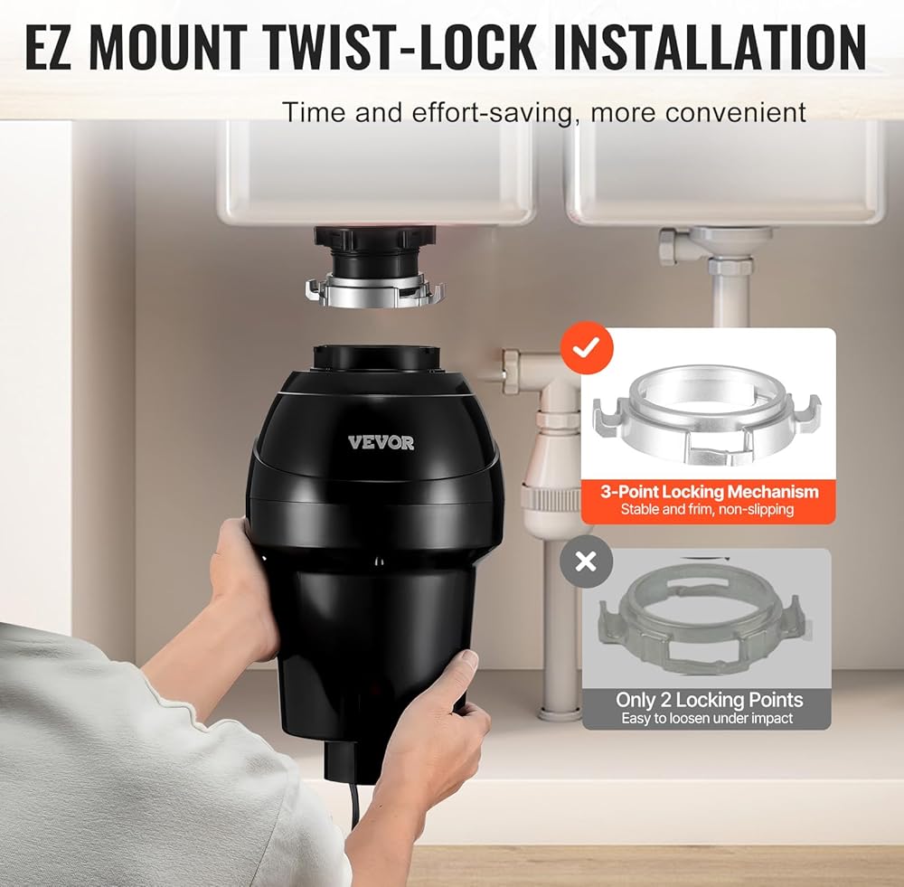 القوة الفعالة: يتميز التخلص من القمامة بمحرك 1 حصان DC بسرعة 3270 دورة في الدقيقة ، وسحق نفايات الطعام على الفور. يطحن العظام والقذائف الصلبة بسهولة مع نتائج جيدة خالية من البقايا ، مما يوفر لك الوقت والجهد