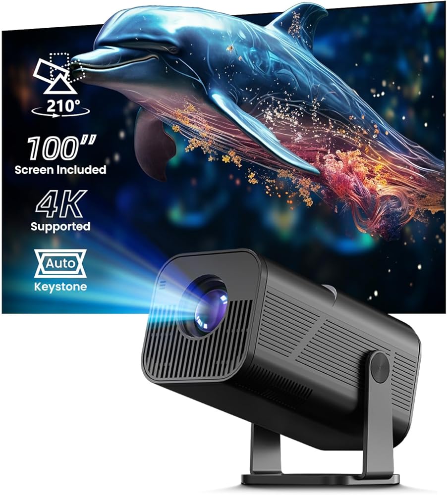 Mini Projector with WiFi and Bluetooth, 4k Support Portable Outdoor Projector, 200 ANSI Lumens, Smart Projector with Android, Built-in App Movie Proyector for Home Theater, Camping, Gaming