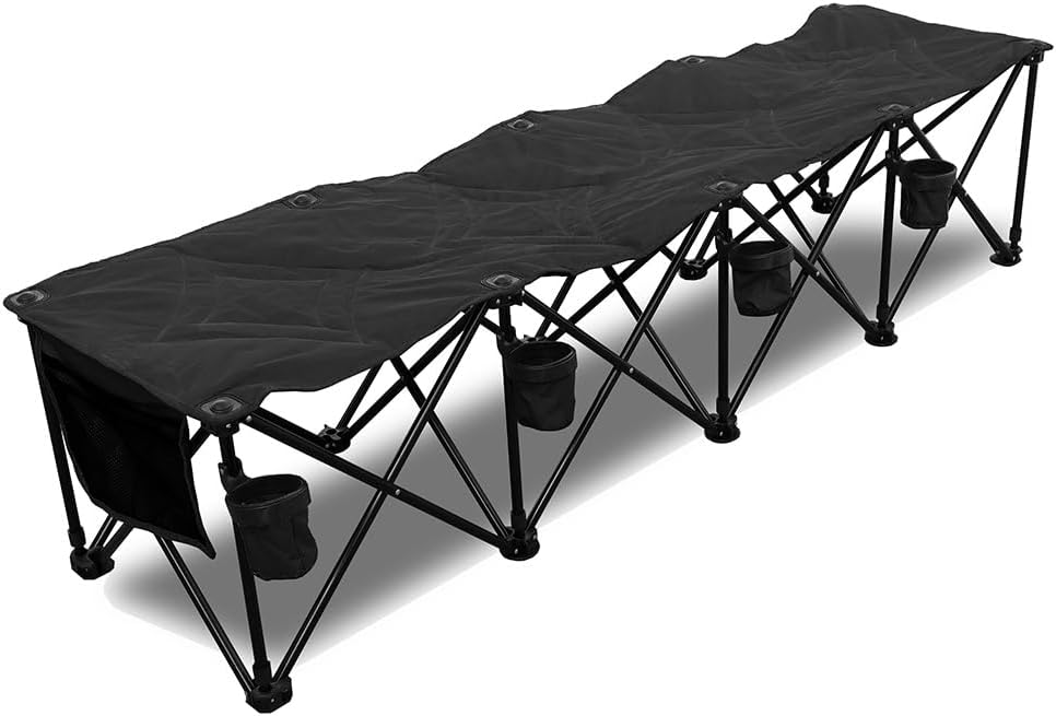 DURABLE DESIGN - Each bench is made of 2 layers of strong 600D nylon that is double and triple stitched at the pressure points to ensure durability. The steel frame can support an average sized adult in every seat.