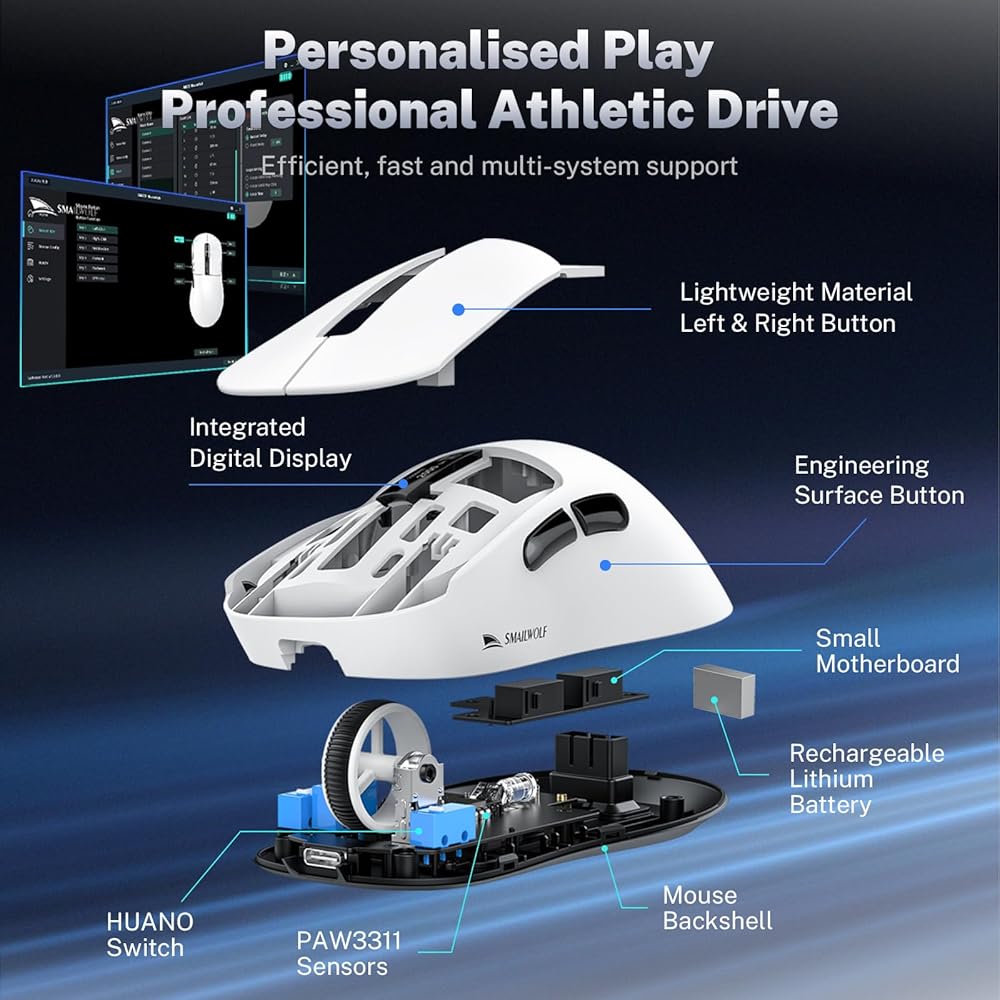 optimized for different mouse grips and hand sizes.