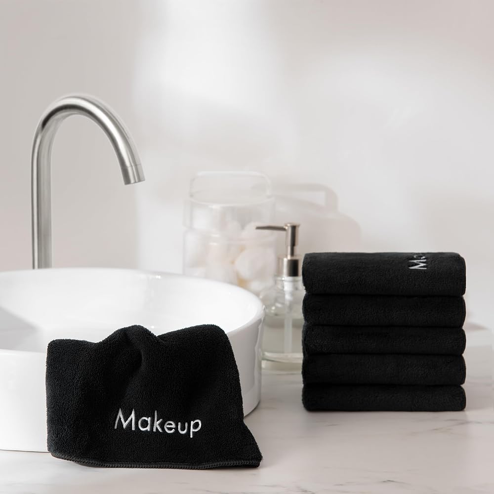 Arkwright Makeup Towels - Pack of 6 - Ultra Soft & Gentle Microfiber Coral Fleece Washcloth Face Make Up Remover, Reusuable Eraser Cloth Essentials for Hosts & Artists, 13 x 13 in, Black