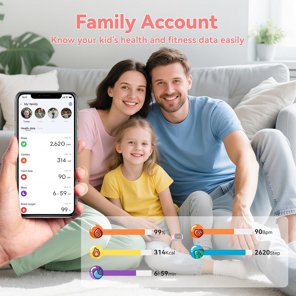 watch أطفال اللياقة البدنية مع حساب العائلة】 يمكن للأطفال تتبع خطواتهم/المسافة/السعرات الحرارية دون عناء محروقة ونشطة طوال اليوم. يدعم 20 وضعًا رياضيًا مختلفًا ، بما في ذلك المفضلة مثل الجري وكرة السلة والسباحة والمزيد. المساعدة في إلهام الطفل حب الحركة والعادات الصحية. قم بتوصيل وساعات متعددة بسهولة داخل حساب عائلي واحد ، مما يجعل من السهل على الآباء التحقق من نشاط أطفالك وبيانات الصحة