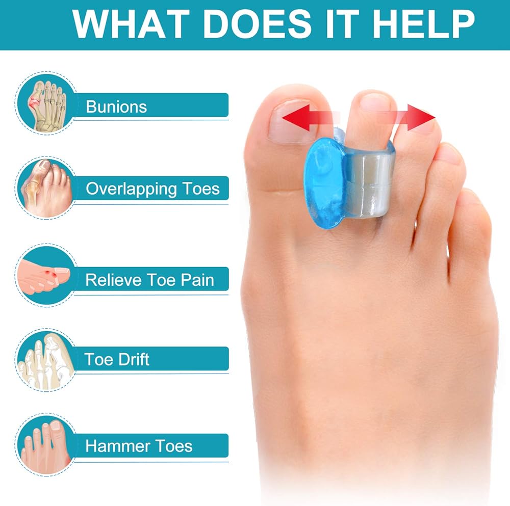 سهل الاستخدام: ما عليك سوى ارتداء فاصل أصابع القدم ذو الفتحة الواحدة هذا على أصابع قدميك، ويمكنه توفير دعم مريح لأصابع قدميك وتخفيف آلام أصابع القدم. يمكن تكييف فاصل أصابع القدم الأزرق الشفاف مع مجموعة متنوعة من الأحذية، ومن الأسهل تثبيت الموضع بالجوارب.