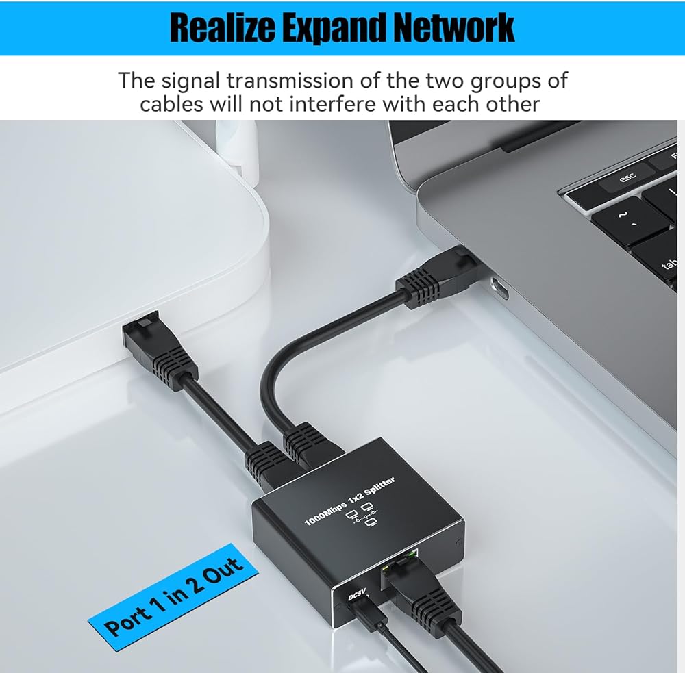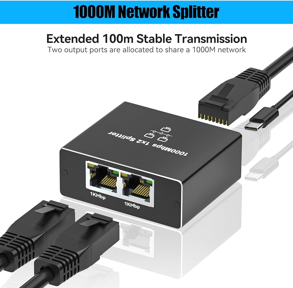 Stable high-speed data transmission: The RJ45 Ethernet splitter can split a network cable into two outputs. At the same time, each network cable can reach 1000Mbps, providing Gigabit Ethernet speed to ensure fast and stable data transmission, whether it is file transfer, Whether streaming media or online gaming, you can enjoy an efficient network experience.