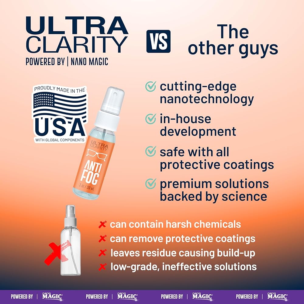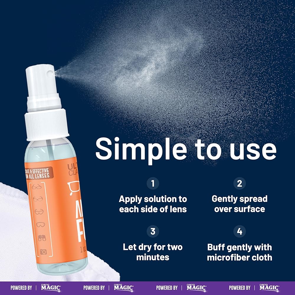 ON-THE-GO, IDEAL FOR ANY EYEWEAR – Stop fogging on your essential equipment with our anti fog solution. This 1 oz spray kit (over 300 uses) can be carried wherever you go. Simply spray a couple of times on each lens and then gently buff with the provided fine microfiber cloth.