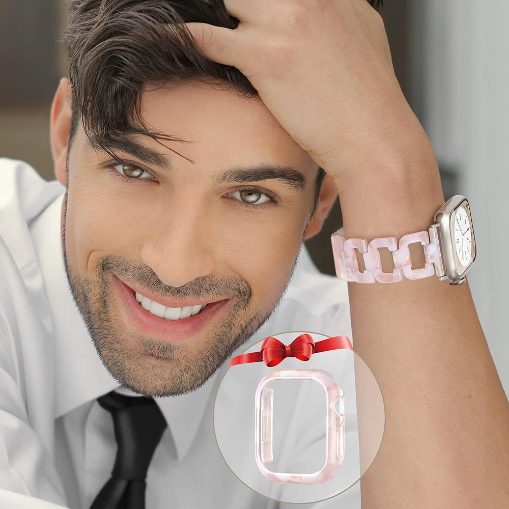 【Comfortable to wear】Extreme Lightness makes it very comfortable to wear, and besides skin-friendly. Each piece of resin is slowly polished by the experienced artificers. Combined with premium tortoise-tone Resin, it offers a new bracelet look to your Apple watch. Lighter than stainless steel metal band.