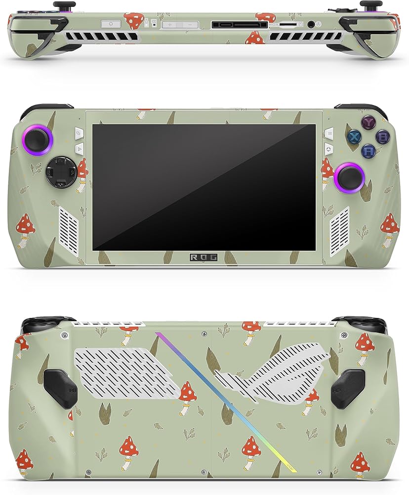ZOOMHITSKINS Compatible for Asus ROG Ally Skin Glitter Finish, Mushrooms Cute Cartoon Brown Red Green Botanical Nature Vintage Autumn Fall, Durable 3M Vinyl Sticker, Made in The USA