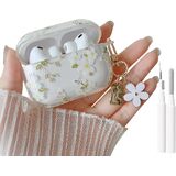 Flowers Design:Simple and stylish white flower pattern with flower keychain design case, makes your AirPods 4 beautiful,pretty and fashionable elegant without fading