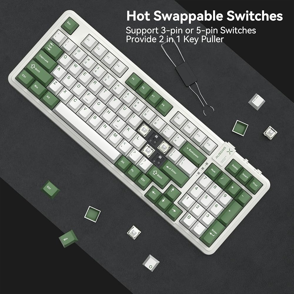 AUSDOM 98Pro Wireless Mechanical Keyboard, Tri-Mode Hot-Swappable Gaming Keyboard with Bluetooth 5.0, Gasket Structure, Adjustable White Backlight, Linear Switches for Windows/Mac/PC (Clikcy Sound)