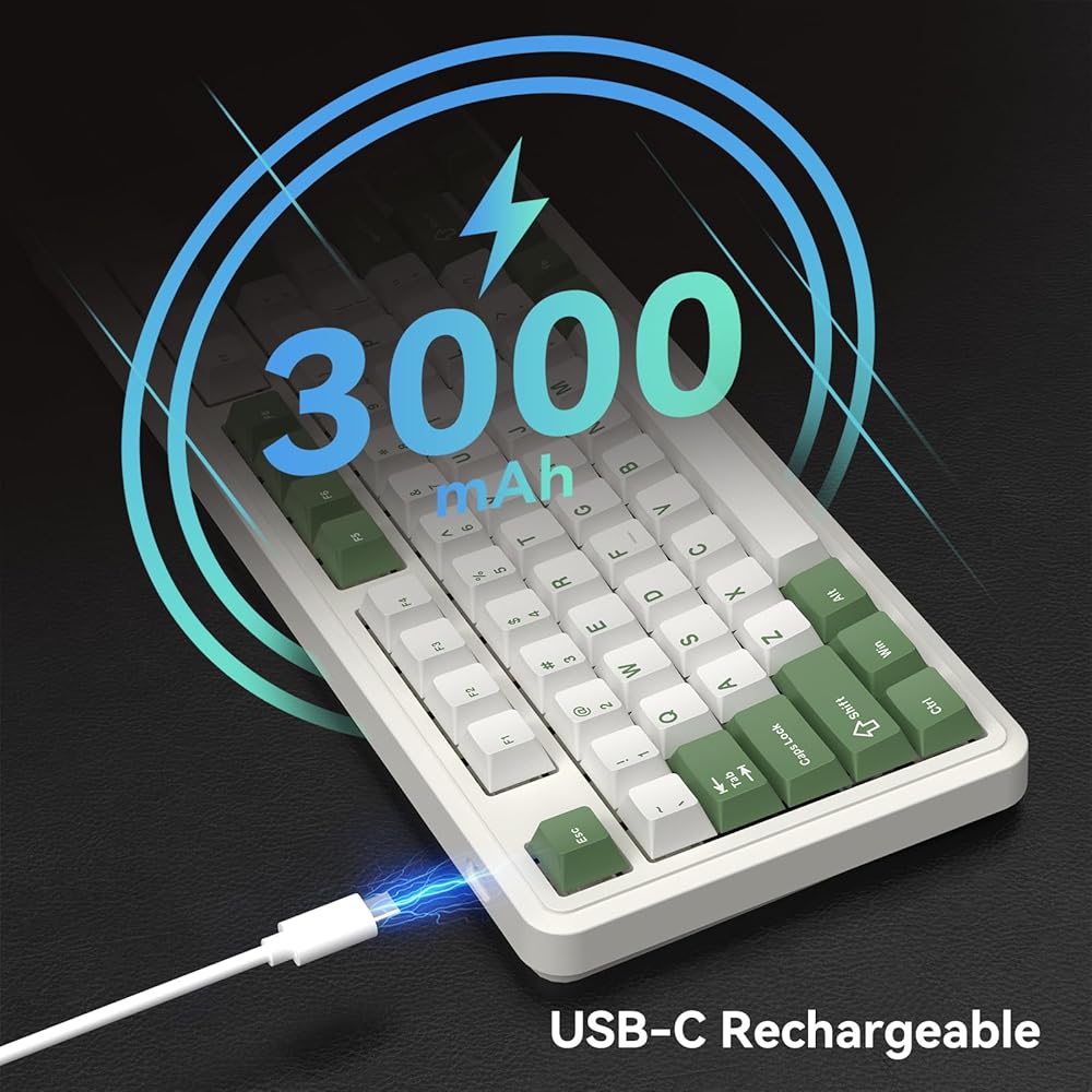 Mac/Win Compatibility& Rechargeable Battery- Fully compatible with both Mac and Windows operating systems, you can enjoy the full functionality of the keyboard regardless of your usage preferences. With the FN+ O/P key combination, you can easily switch between Win and Mac layout. 3000 mAh rechargeable battery supports up to three-month usage time with the backlight off