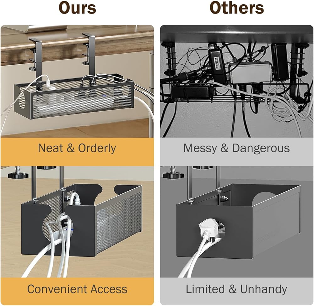 【Child & Pet Safe Cable Control】Protect what matters most! This cord management box keeps electrical cords safely hidden away from curious child and playful pets. The sturdy under desk cable tray design prevents accidental pulls or chewing hazards, giving you peace of mind about desk cable management safety in any family space