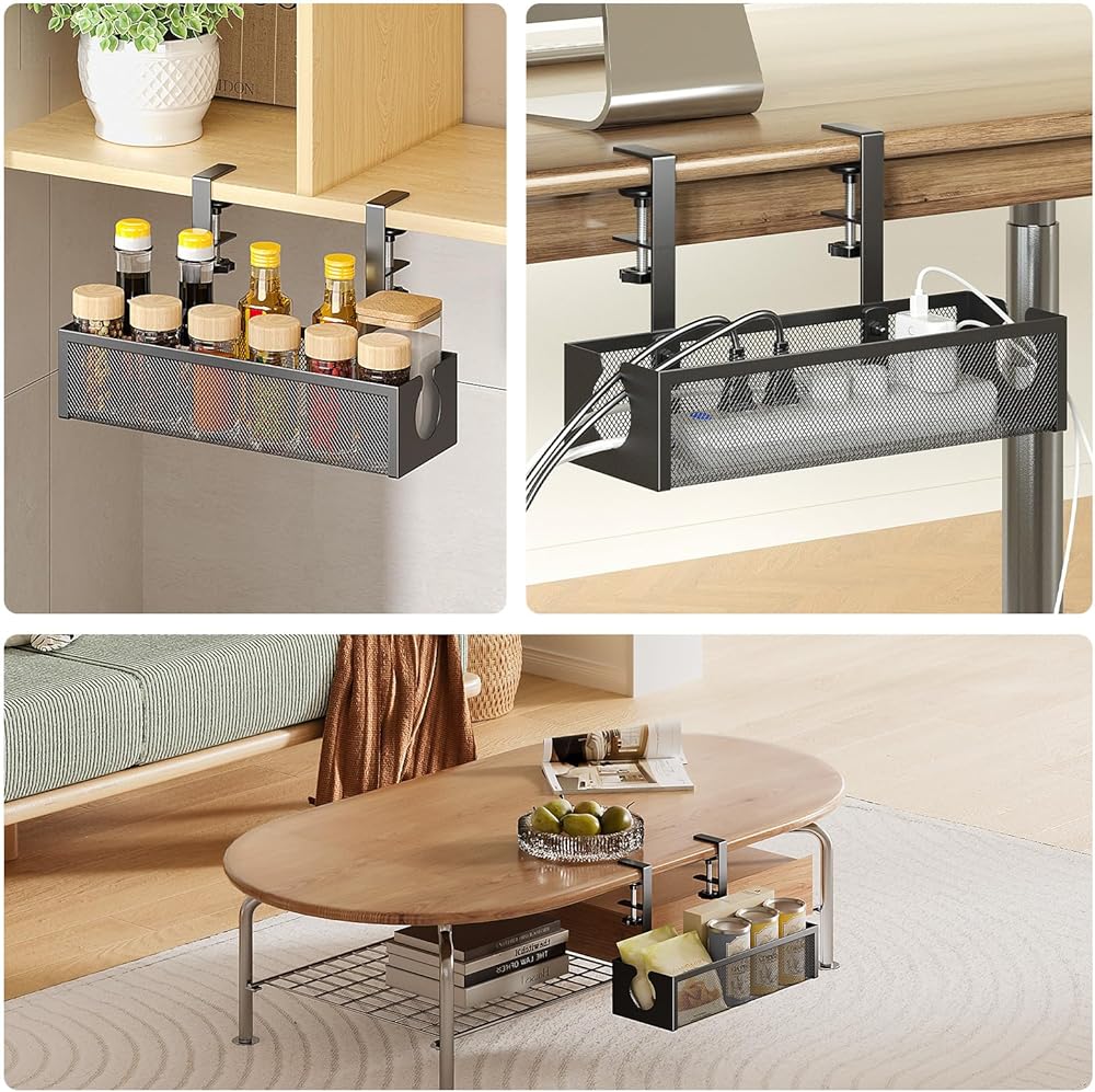 【Adjustable F-Clamp Design】One size fits all desks! The innovative F-clamp adjusts from 0.2"" to 1.85"" to fit any desk thickness. Dual open-end design creates the ultimate cable organizer - plug and unplug devices effortlessly without moving the under desk cable management tray. A suitable choice for gaming desk accessories or home office environments