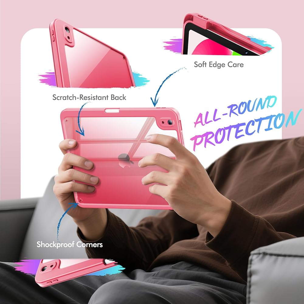Full Protection with Soft TPU Edges: Soft TPU edges provide excellent shock absorption, safeguarding your device from everyday bumps and accidental drops. The full-coverage design ensures comprehensive protection for your iPad