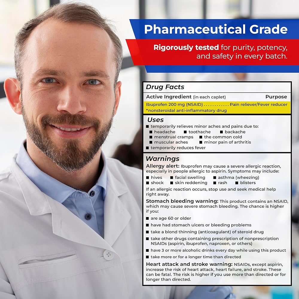 Smooth Ingestion, Fast Relief ... Our Ibuprofen 200mg caplets, with their exceptionally smooth and sleek coating, transform the act of swallowing into a breeze, ensuring that you can start experiencing relief from pain swiftly. Expertly crafted for your convenience, these coated, capsule-shaped NSAID pills not only go down effortlessly but also work diligently for rapid and effective relief you need. Say goodbye to discomfort and hello to a more comfortable you with our Ibuprofen 200mg caplets.