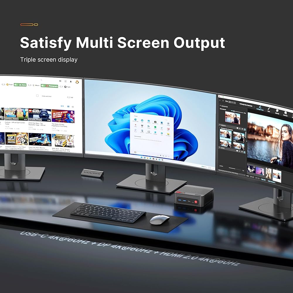 【4K@60Hz HD Triple Display】 : With support for 4K resolution at 60Hz, the P4 mini computer delivers crisp and detailed visuals, making it suitable for tasks that require high-definition displays, such as video editing, content creation, and multimedia consumption.