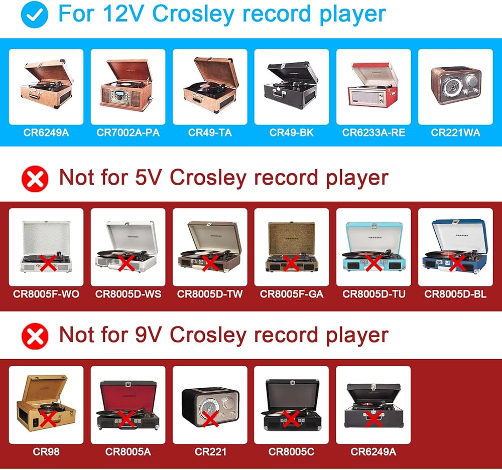 [for Audio-Technica power adapter:] Compatible with AT-LP60X-BK, AT-LP120XUSB-BK ,AT-LP60X-BW, AT-LP120XBT-USB-BK, AT-LP60X-GM, AT-LP60XBT-RD, AT-LPW30BKR, AT-LPW40WN, AT-LPW50PB, AD-SE1220KZ Automatic Wireless Belt-Drive Turntable Record Player Charger Cord.